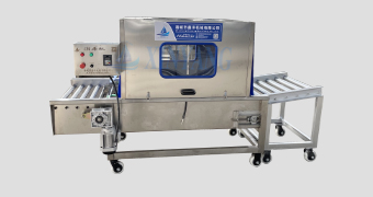 將消毒液體進(jìn)行離分子霧化后輸入到霧化室,箱體經(jīng)過霧化室時(shí)周身被霧化后的消毒液覆蓋從而達(dá)到消毒殺菌的效果,該設(shè)備配合消毒液對(duì)物品外包裝進(jìn)行消毒滅菌。